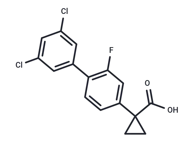 – O=C(O)C1(C=2C=CC(=C(F)C2)C3=CC(Cl)=CC(Cl)=C3)CC1