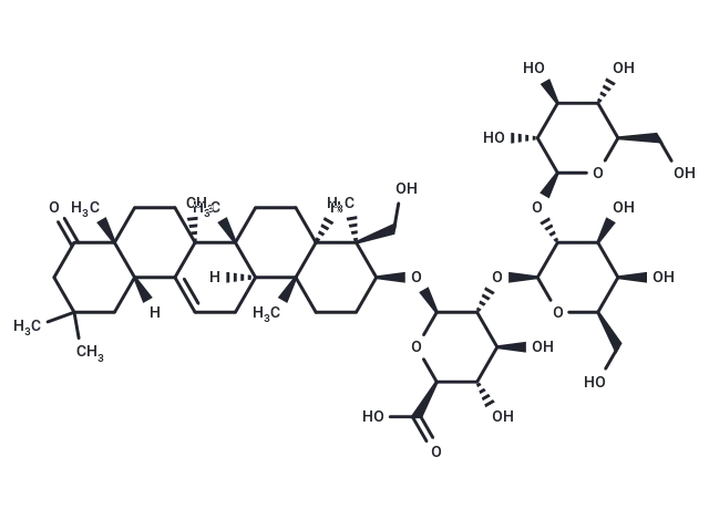 – C[C@]12[C@@]([C@]3(C)[C@@](CC1)([C@](CO)(C)[C@@H](O[C@H]4[C@H](O[C@H]5[C@H](O[C@@H]6O[C@H](CO)[C@@H](O)[C@H](O)[C@H]6O)[C@@H](O)[C@@H](O)[C@@H](CO)O5)[C@@H](O)[C@H](O)[C@@H](C(O)=O)O4)CC3)[H])(CC=C7[C@@]2(C)CC[C@]8(C)[C@]7(CC(C)(C)CC8=O)[H])[H]