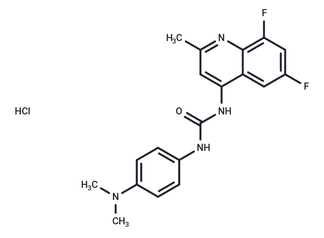 – Cl.CN(C)c1ccc(NC(=O)Nc2cc(C)nc3c(F)cc(F)cc23)cc1