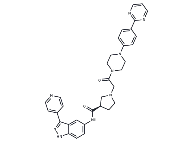 – O=C(CN1CC[C@H](C1)C(=O)Nc1ccc2[nH]nc(-c3ccncc3)c2c1)N1CCN(CC1)c1ccc(cc1)-c1ncccn1