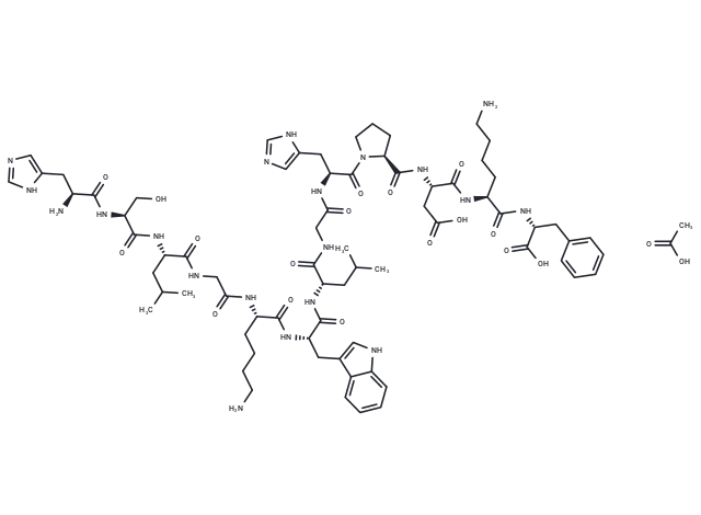 – CC(C)C[C@H](NC([C@@H](NC([C@@H](N)CC1=CN=CN1)=O)CO)=O)C(NCC(N[C@@H](CCCCN)C(N[C@H](C(N[C@@H](CC(C)C)C(NCC(N[C@@H](CC2=CN=CN2)C(N3[C@@H](CCC3)C(N[C@@H](CC(O)=O)C(N[C@@H](CCCCN)C(N[C@@H](C(O)=O)CC4=CC=CC=C4)=O)=O)=O)=O)=O)=O)=O)CC5=CNC6=CC=CC=C65)=O)=O)=O.CC(O)=O