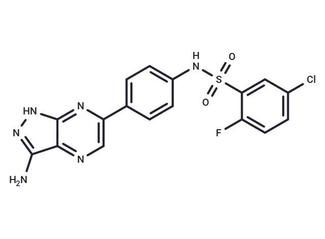 – Nc1n[nH]c2nc(cnc12)-c1ccc(NS(=O)(=O)c2cc(Cl)ccc2F)cc1