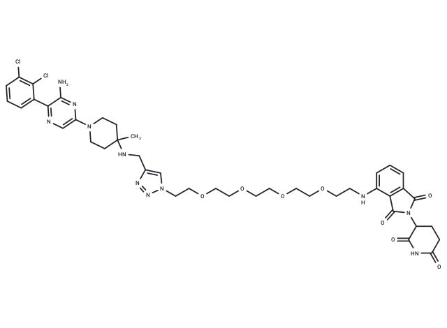 – SHP2 protein degrader-1 is a highly efficient allosteric inhibitor targeting SHP2, inducing its degradation and resulting in cell apoptosis; it shows promising potential for studying diseases associated with SHP2.