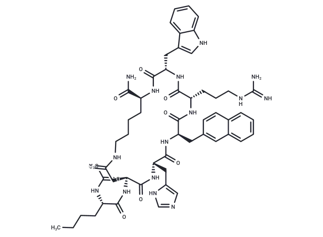 – CCCC[C@H](NC(C)=O)C(=O)N[C@H]1CC(=O)NCCCC[C@H](NC(=O)[C@H](Cc2c[nH]c3ccccc23)NC(=O)[C@H](CCCNC(N)=N)NC(=O)[C@@H](Cc2ccc3ccccc3c2)NC(=O)[C@H](Cc2cnc[nH]2)NC1=O)C(N)=O