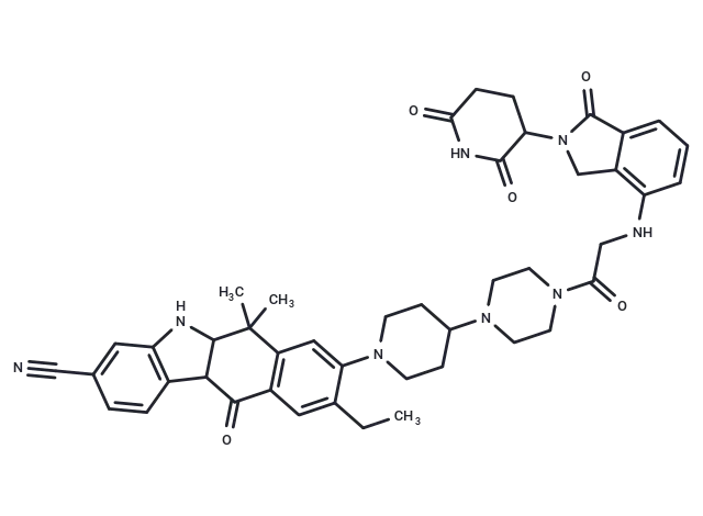 – O=C1N(C2C(NC(CC2)=O)=O)CC(C1=CC=C3)=C3NCC(N4CCN(C5CCN(C6=CC7=C(C(C(C(C=CC(C#N)=C8)=C8N9)C9C7(C)C)=O)C=C6CC)CC5)CC4)=O