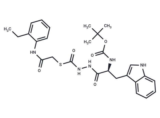– CCc1ccccc1NC(=O)CSC(=O)NNC(=O)[C@H](Cc1c[nH]c2ccccc12)NC(=O)OC(C)(C)C