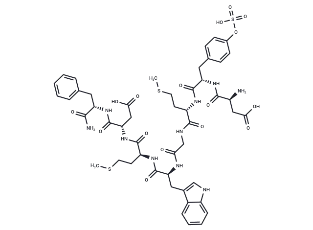 – C([C@@H](C(N[C@H](C(N[C@H](C(N[C@@H](CC1=CC=CC=C1)C(N)=O)=O)CC(O)=O)=O)CCSC)=O)NC(CNC([C@@H](NC([C@H](CC2=CC=C(OS(=O)(=O)O)C=C2)NC([C@H](CC(O)=O)N)=O)=O)CCSC)=O)=O)C=3C=4C(NC3)=CC=CC4