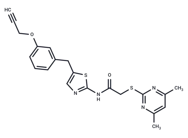 – O=C(NC1=NC=C(S1)CC=2C=CC=C(OCC#C)C2)CSC=3N=C(C=C(N3)C)C