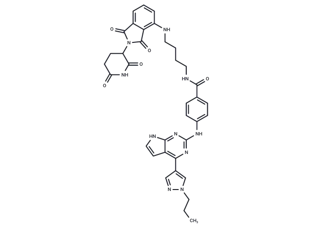 – O=C1C=2C(C(=O)N1C3C(=O)NC(=O)CC3)=CC=CC2NCCCCNC(=O)C4=CC=C(NC5=NC(=C6C(=N5)NC=C6)C7=CN(CCC)N=C7)C=C4