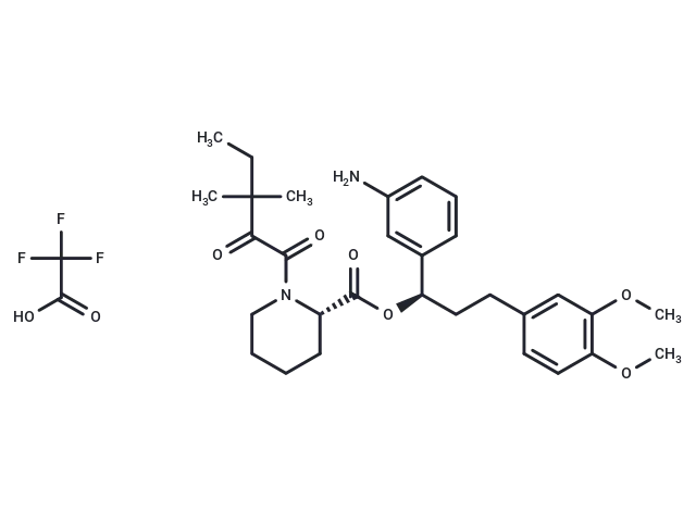 – C(C(O)=O)(F)(F)F.C(C(C(CC)(C)C)=O)(=O)N1[C@H](C(O[C@H](CCC2=CC(OC)=C(OC)C=C2)C3=CC(N)=CC=C3)=O)CCCC1
