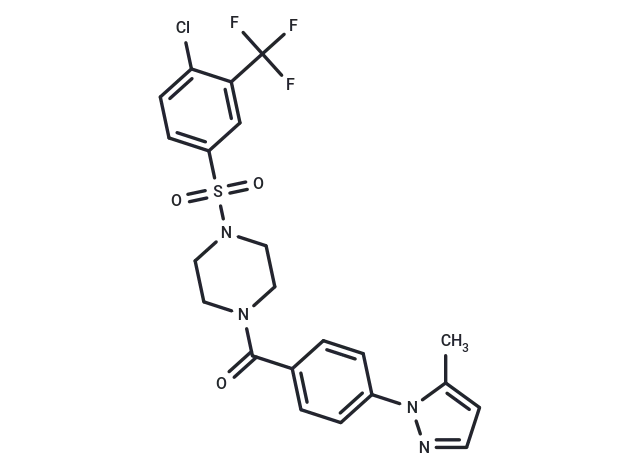 – Cc1ccnn1-c1ccc(cc1)C(=O)N1CCN(CC1)S(=O)(=O)c1ccc(Cl)c(c1)C(F)(F)F