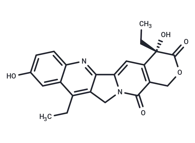 – SN-38 (NK012) is the active metabolite of Irinotecan, a DNA topoisomerase I (Topo I) inhibitor, which inhibits DNA and RNA synthesis (IC50=0.077/1.3 μM). SN-38 has antitumor activity and induces autophagy.