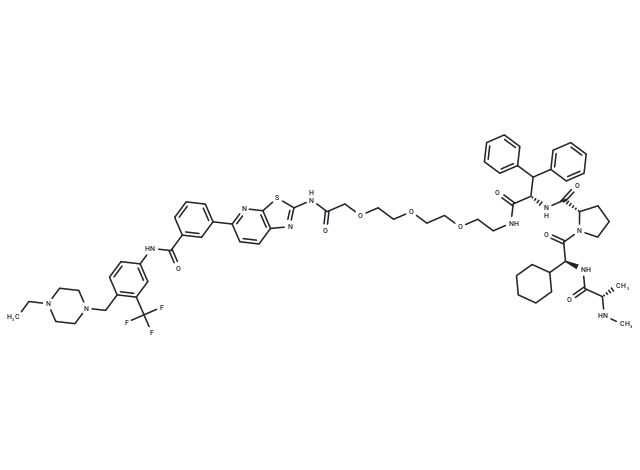 – SNIPER(ABL)-047, a compound that links HG-7-85-01 (an ABL inhibitor) to MV-1 (an IAP ligand) via a linker, effectively decreases the BCR-ABL protein levels, achieving a DC50 value of 2 μM[1].