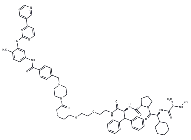 – CC1=CC=C(NC(C2=CC=C(CN3CCN(C(COCCOCCOCCNC([C@H](C(C4=CC=CC=C4)C5=CC=CC=C5)NC([C@H]6N(C([C@@H](NC([C@H](C)NC)=O)C7CCCCC7)=O)CCC6)=O)=O)=O)CC3)C=C2)=O)C=C1NC8=NC=CC(C9=CC=CN=C9)=N8