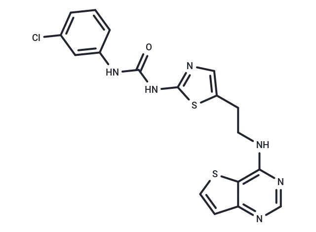 – Clc1cccc(NC(=O)Nc2ncc(CCNc3ncnc4ccsc34)s2)c1