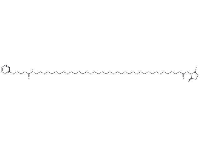 – SPDP-PEG12-NHS ester is a PEG-based linker for PROTACs that joins two essential ligands, crucial for forming PROTAC molecules, enabling selective protein degradation via the ubiquitin-proteasome system within cells.