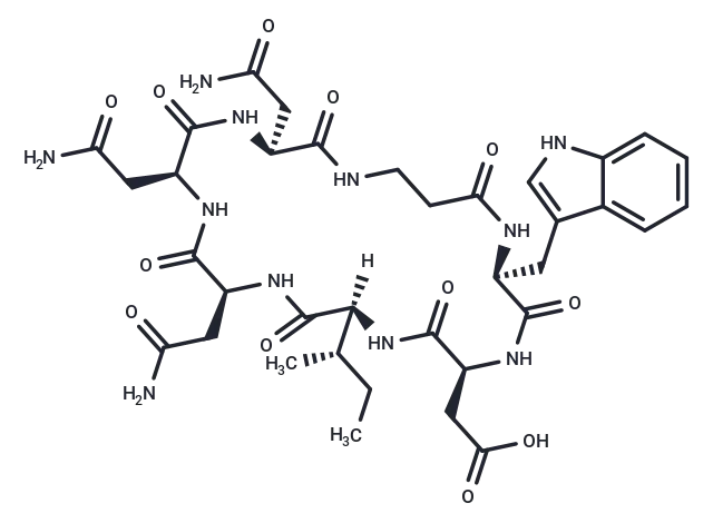 – C(C=1C=2C(NC1)=CC=CC2)[C@H]3C(=O)N[C@@H](CC(O)=O)C(=O)N[C@@]([C@H](CC)C)(C(=O)N[C@@H](CC(N)=O)C(=O)N[C@@H](CC(N)=O)C(=O)N[C@@H](CC(N)=O)C(=O)NCCC(=O)N3)[H]