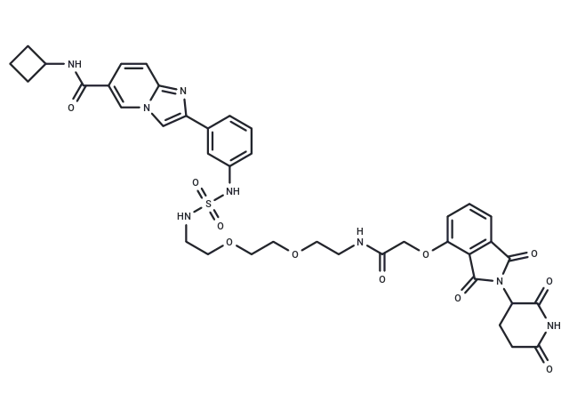 – O=C(NC1CCC1)C=2C=CC3=NC(=CN3C2)C=4C=CC=C(C4)NS(=O)(=O)NCCOCCOCCNC(=O)COC5=CC=CC=6C(=O)N(C(=O)C56)C7C(=O)NC(=O)CC7
