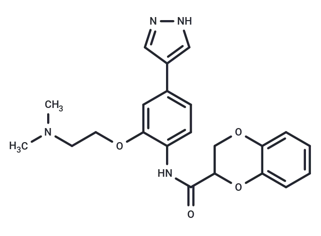 – CN(C)CCOc1cc(ccc1NC(=O)C1COc2ccccc2O1)-c1cn[nH]c1