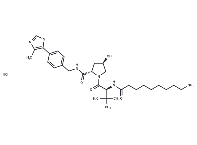 – ‘(S,R,S)-AHPC-C8-NH2 (VH032-C8-NH2) hydrochloride is a synthetic E3 ligase ligand-linker conjugate, consisting of the VH032-based VHL ligand and a linker for use in PROTAC technology.’