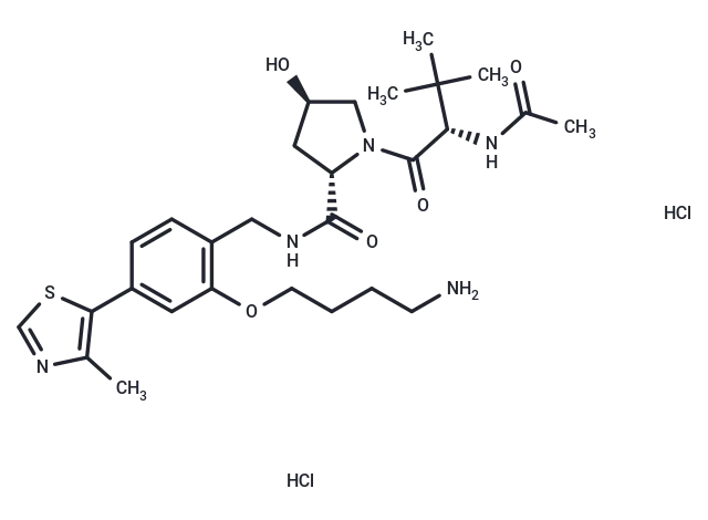 – CC(N[C@@H](C(C)(C)C)C(N1[C@@H](C[C@H](C1)O)C(NCC2=C(C=C(C3=C(N=CS3)C)C=C2)OCCCCN)=O)=O)=O.Cl.Cl
