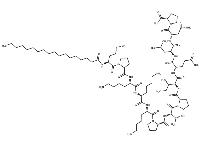 – C([C@@H](NC([C@@H](NC([C@@H](NC(=O)[C@H]1N(C([C@@H](NC(CCCCCCCCCCCCCCCCC)=O)CCSC)=O)CCC1)CCCCN)=O)CCCCN)=O)CCCCN)(=O)N2[C@H](C(N[C@H](C(=O)N3[C@H](C(N[C@H](C(N[C@H](C(N[C@H](C(N[C@H](C(=O)N4[C@H](C(N)=O)CCC4)CC(N)=O)=O)CC(C)C)=O)CCC(N)=O)=O)[C@H](CC)C)=O)CCC3)[C@@H](C)O)=O)CCC2