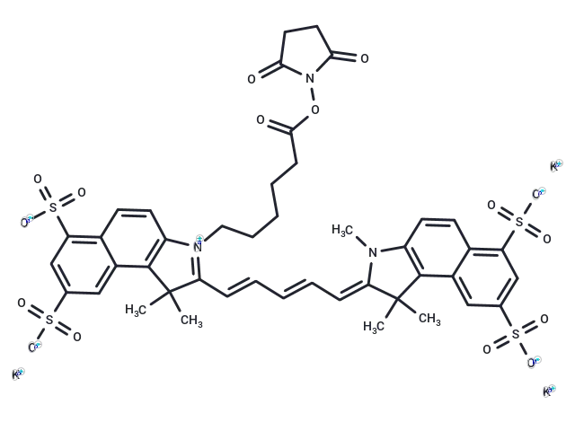– CC1(C(C2=CC(S(=O)([O-])=O)=C3)=C([N+](CCCCCC(ON4C(CCC4=O)=O)=O)=C1/C=C/C=C/C=C5C(C)(C6=C(C=CC7=C(S(=O)([O-])=O)C=C(S(=O)([O-])=O)C=C76)N/5C)C)C=CC2=C3S(=O)([O-])=O)C.[K+].[K+].[K+]
