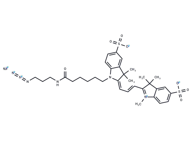 – Sulfo-cyanine3 azide sodium, a water-soluble azide cyanine dye and fluorescent probe (Ex/Em=548/563 nm), can be involved in the synthesis of fused tricyclic heterocycles and produces immunostimulatory agents [1] [2].