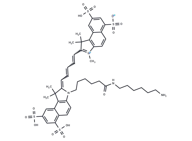 – CC1(C)C=2C=3C(=C(S(=O)(=O)O)C=C(S(=O)(=O)O)C3)C=CC2N(CCCCCC(NCCCCCCN)=O)C1=CC=CC=CC=4C(C)(C)C5=C([N+]4C)C=CC=6C5=CC(S(=O)(=O)O)=CC6S(=O)(=O)[O-]