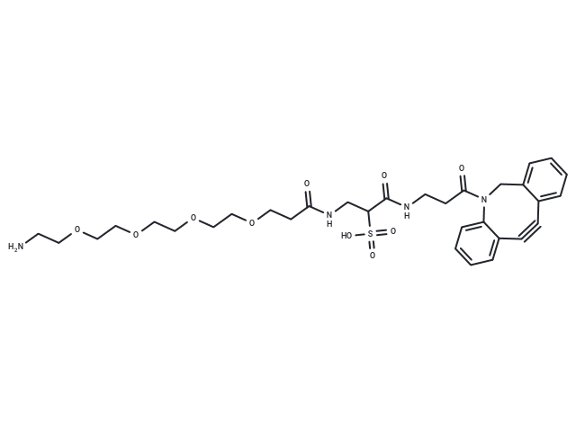 – Sulfo DBCO-PEG4-amine is a PEG-based linker for PROTACs, connecting two essential ligands crucial for forming PROTAC molecules and enabling selective protein degradation via the ubiquitin-proteasome system within cells.