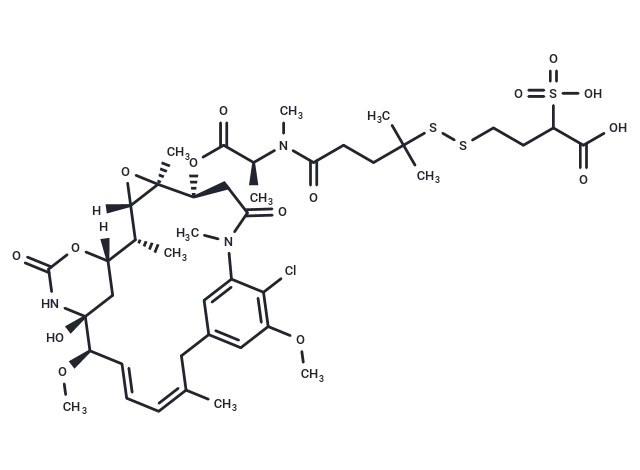 – [H][C@@]12O[C@@]1(C)[C@H](CC(=O)N(C)c1cc(CC(C)=C/C=C/[C@@H](OC)[C@@]3(O)C[C@]([H])(OC(=O)N3)[C@H]2C)cc(OC)c1Cl)OC(=O)[C@H](C)N(C)C(=O)CCC(C)(C)SSCCC(C(O)=O)S(O)(=O)=O |c:17,t:19|