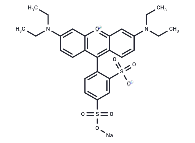 – O=S(C1=CC=C(C2=C3C=CC(N(CC)CC)=CC3=[O+]C4=C2C=CC(N(CC)CC)=C4)C(S(=O)([O-])=O)=C1)(O[Na])=O