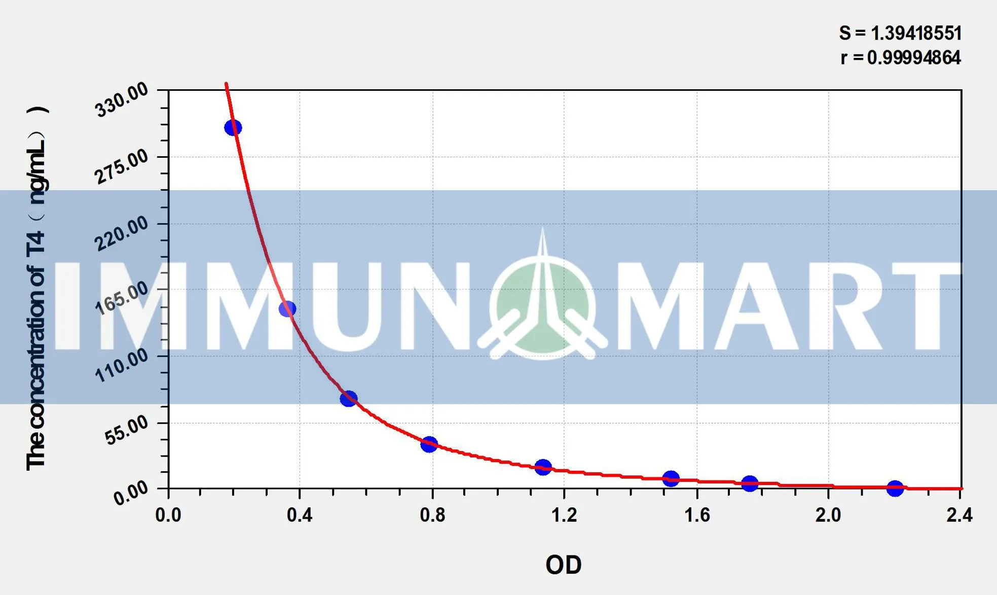 – This assay employs the competitive inhibition enzyme immunoassay technique. The microtiter plate provided in this kit has been pre-coated with T4 protein. Standards or samples are added to the appropriate microtiter plate wells then with a biotin-conjugated antibody specific to T4. Next, Avidin conjugated to Horseradish Peroxidase (HRP) is added to each microplate well and incubated. After TMB substrate solution is added. The enzyme-substrate reaction is terminated by the addition of sulphuric acid solution and the color change is measured spectrophotometrically at a wavelength of 450nm ± 10nm. The concentration of T4 in the samples is then determined by comparing the OD of the samples to the standard curve.