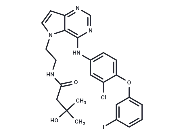 – CC(O)(CC(NCCN1C=CC2=NC=NC(NC3=CC=C(C(Cl)=C3)OC4=CC=CC(I)=C4)=C21)=O)C