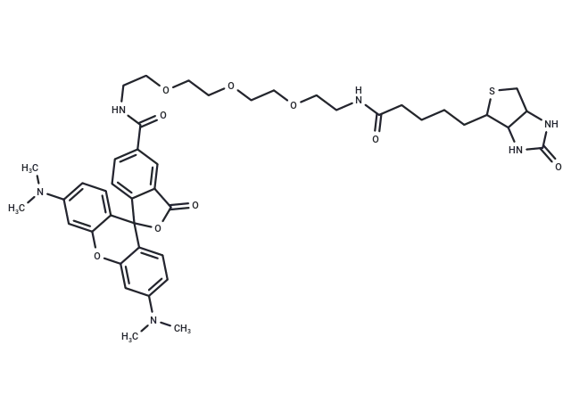 – O=C1OC2(C3=CC=C(C=C3OC4=CC(=CC=C42)N(C)C)N(C)C)C5=CC=C(C=C15)C(=O)NCCOCCOCCOCCNC(=O)CCCCC6SCC7NC(=O)NC67