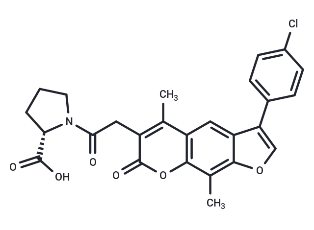 – CC1=C2C(C(=CO2)C3=CC=C(Cl)C=C3)=CC4=C1OC(=O)C(CC(=O)N5[C@H](C(O)=O)CCC5)=C4C