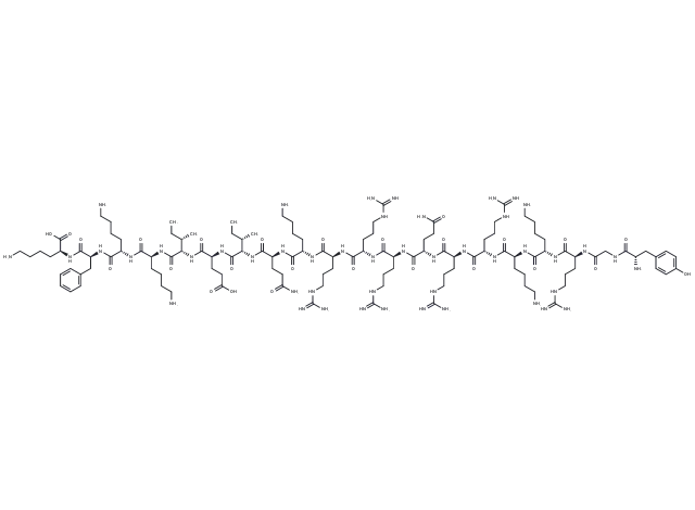 – CC[C@H](C)[C@@H](C(N[C@@H](CCCCN)C(N[C@@H](CCCCN)C(N[C@@H](Cc1ccccc1)C(N[C@@H](CCCCN)C(O)=O)=O)=O)=O)=O)NC([C@H](CCC(O)=O)NC([C@H]([C@@H](C)CC)NC([C@H](CCC(N)=O)NC([C@H](CCCCN)NC([C@H](CCCNC(N)=N)NC([C@H](CCCNC(N)=N)NC([C@H](CCCNC(N)=N)NC([C@H](CCC(N)=O)NC([C@H](CCCNC(N)=N)NC([C@H](CCCNC(N)=N)NC([C@H](CCCCN)NC([C@H](CCCCN)NC([C@H](CCCNC(N)=N)NC(CNC([C@H](Cc(cc1)ccc1O)N)=O)=O)=O)=O)=O)=O)=O)=O)=O)=O)=O)=O)=O)=O)=O
