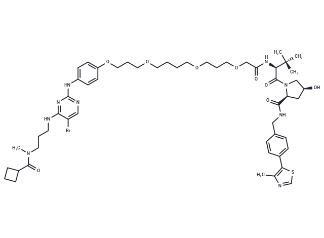 – CN(CCCNc1nc(Nc2ccc(OCCCOCCCCOCCCOCC(=O)N[C@H](C(=O)N3C[C@@H](O)C[C@H]3C(=O)NCc3ccc(cc3)-c3scnc3C)C(C)(C)C)cc2)ncc1Br)C(=O)C1CCC1 |@@:57|