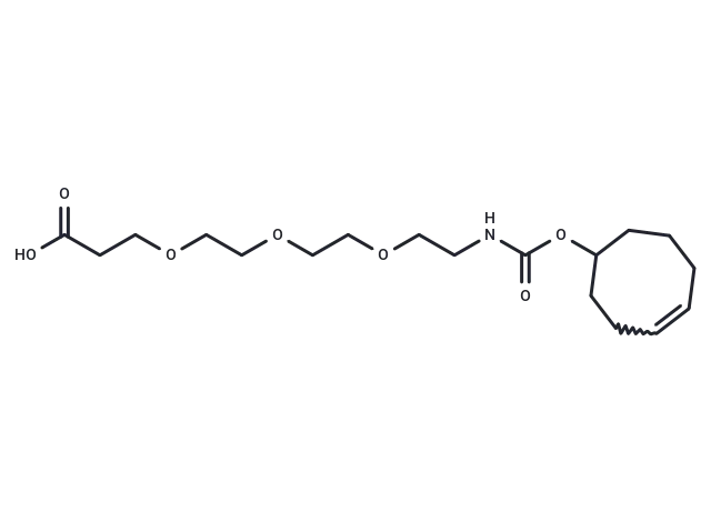 – TCO-PEG3-acid, a PEG-based linker for PROTACs, joins two essential ligands crucial for forming PROTAC molecules, enabling selective protein degradation by leveraging the ubiquitin-proteasome system within cells.