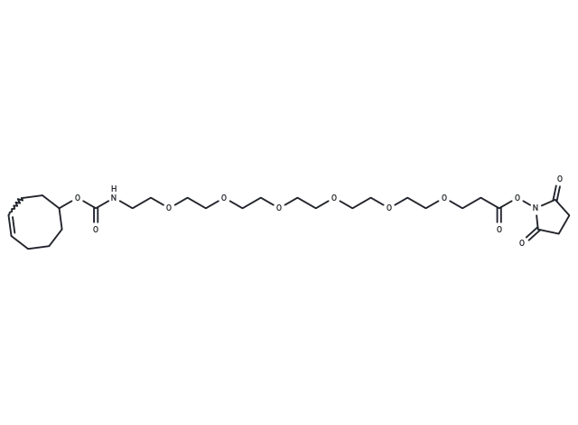 – TCO-PEG6-NHS ester, a PEG-based linker for PROTACs, joins two essential ligands required for the formation of PROTAC molecules, facilitating selective protein degradation by utilizing the (ubiquitin-proteasome system) within cells.