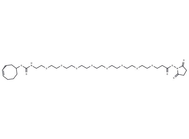 – TCO-PEG8-NHS ester is a PEG-based linker for PROTACs that joins two essential ligands, crucial for forming PROTAC molecules, enabling selective protein degradation by leveraging the ubiquitin-proteasome system within cells.