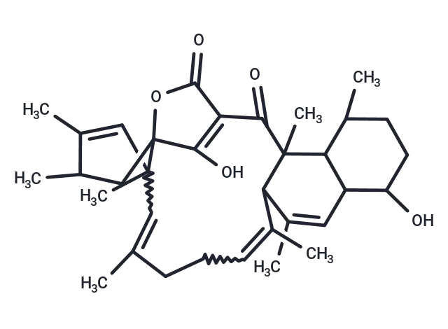 – CC1CCC(O)C2C=C(C)C3C(C)=CCCC(C)=CC4(C)C=C(C)C(C)CC44OC(=O)C(=C4O)C(=O)C3(C)C12 |w:13.13,18.18,c:32,t:7,21|