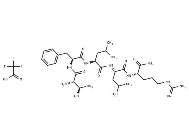 – OC(=O)C(F)(F)F.CC(C)C[C@H](NC(=O)[C@H](CC(C)C)NC(=O)[C@H](Cc1ccccc1)NC(=O)[C@@H](N)[C@@H](C)O)C(=O)N[C@@H](CCCNC(N)=N)C(N)=O