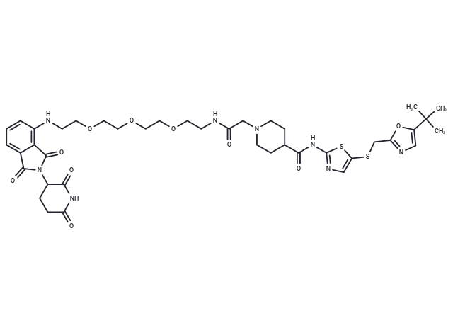 – O=C1C=2C(C(=O)N1C3C(=O)NC(=O)CC3)=CC=CC2NCCOCCOCCOCCNC(CN4CCC(C(NC=5SC(SCC=6OC(C(C)(C)C)=CN6)=CN5)=O)CC4)=O
