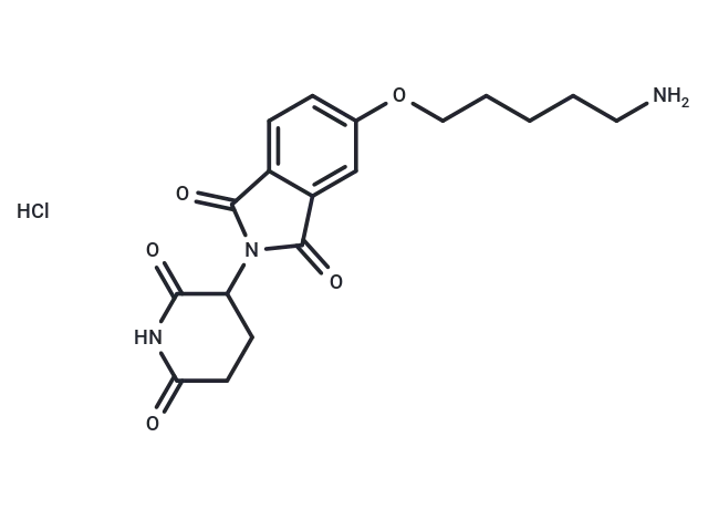 – Thalidomide-5-O-C5-NH2 hydrochloride, a Thalidomide-derived cereblon ligand, facilitates the recruitment of CRBN protein and can be conjugated via a linker to form PROTACs [1].