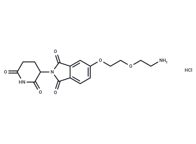 – Thalidomide-5-PEG2-NH2 hydrochloride, a Thalidomide-based cereblon ligand, is used for recruiting CRBN protein. It can be linked to a protein ligand via a linker to form PROTACs [1].