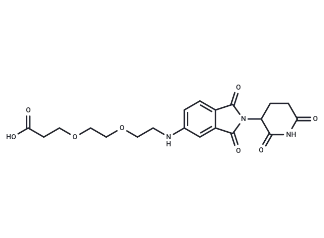 – Thalidomide-NH-PEG2-COOH is a conjugate synthesized as an E3 ligase ligand-linker, incorporating the cereblon ligand from Thalidomide and a linker commonly used in [PROTAC] technology.