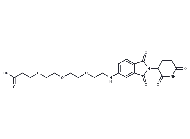 – Thalidomide-NH-PEG3-COOH, a conjugate of the E3 ligase ligand-linker synthesized compound, integrates a cereblon ligand based on Thalidomide and a linker employed in PROTAC technology.