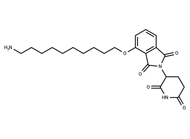 – Thalidomide-O-C10-NH2 is a synthetic E3 ligase ligand-linker conjugate combining a cereblon ligand derived from Thalidomide with a linker crucial for PROTAC technology.