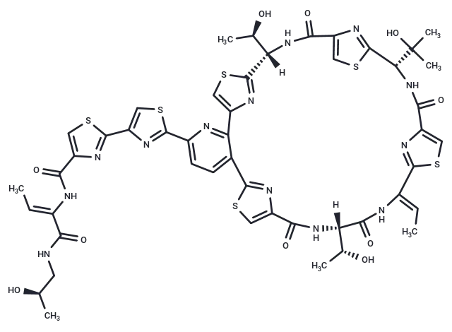 – [H][C@]1(NC(=O)c2csc(n2)[C@@H](NC(=O)c2csc(n2)C(NC(=O)[C@@]([H])(NC(=O)c2csc(n2)-c2ccc(nc2-c2csc1n2)-c1nc(cs1)-c1nc(cs1)C(=O)NC(=C/C)C(=O)NC[C@@H](C)O)[C@@H](C)O)=CC)C(C)(C)O)[C@@H](C)O